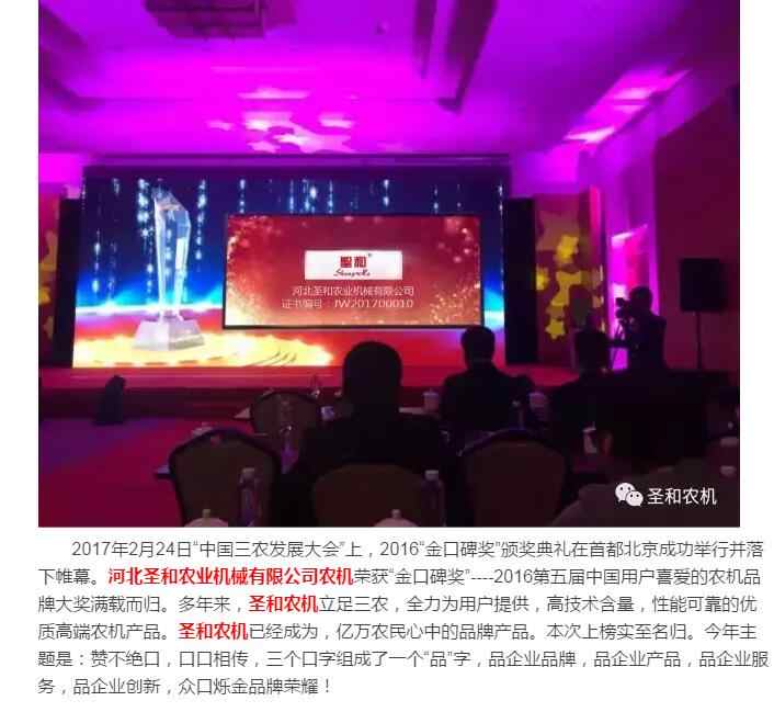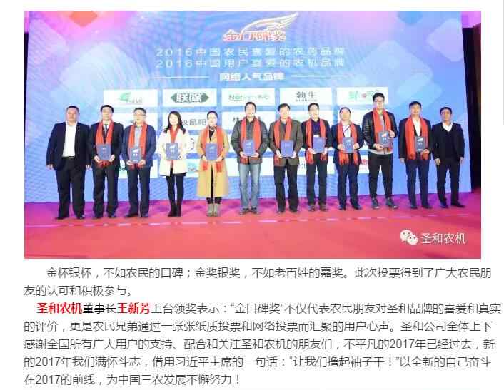 圣和農機--“金口碑獎”中國用戶喜愛的農機品牌