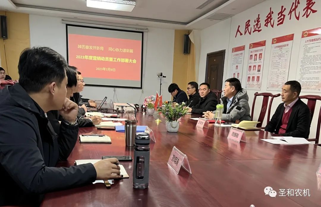 2023年2月9日,河北圣和農業機械有限公司“2023年度營銷動員暨工作部署大會”在圣和辦公大樓二樓會議室隆重召開。公司總部領導與營銷中心全體人員參會,生產中心、研發中心及各職能部門領導列席會議。