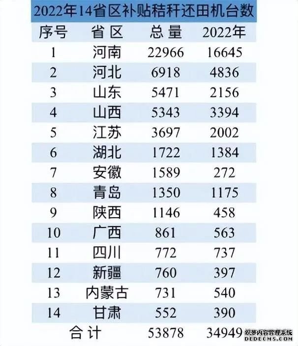 14省區(qū)2022年補(bǔ)貼秸稈粉碎還田機(jī)數(shù)量