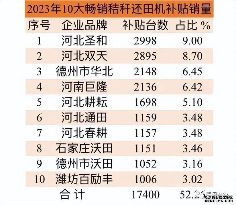 除上述10大暢銷品牌外,補(bǔ)貼銷量比較多的秸稈粉碎還田機(jī)企業(yè)還有趙縣聯(lián)行、石家莊海澳、濰坊市宏勝、河北盛農(nóng)、石家莊興田、石家莊惠田等。