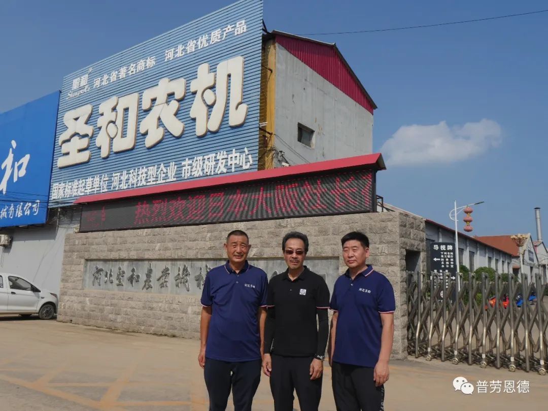 品質傳美譽,客自遠方來。8月13日,日本大坂株式會社代表團一行4人,在大坂社長帶領下再次到訪河北圣和農業機械有限公司進行參觀交流。圣和公司董事長王新芳、總經理師西峰、總經理助理王帥等公司高層領導熱情接待了大坂社長一行。