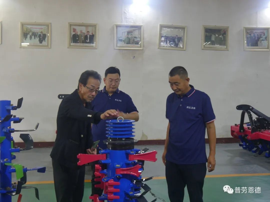 在圣和公司董事長王新芳的陪同下,大坂社長參觀了圣和公司農機具的生產過程,并對圣和公司的生產管理、制造工藝、質量管控等各生產環節進行了全面、深入的了解。