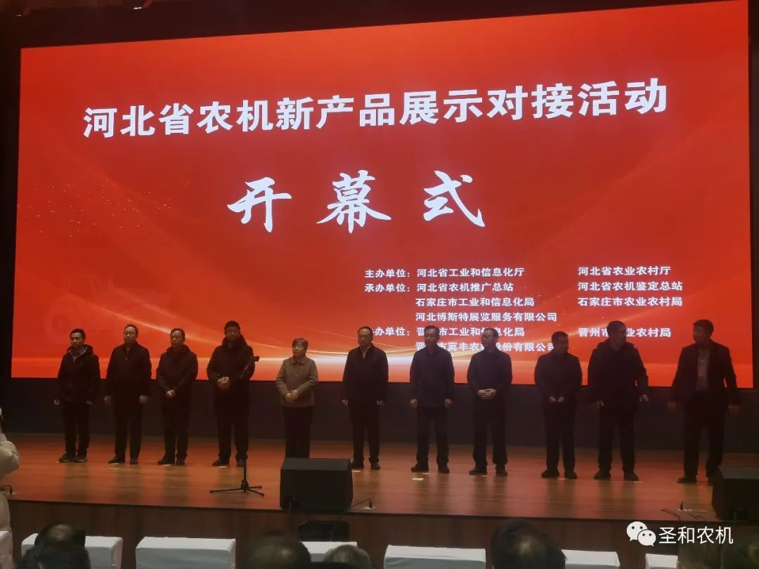2023年12月25日“河北省農機新產品展示對接活動”在河北省晉州市市委黨校禮堂隆重舉行。河北圣和農業機械有限公司攜部分新品機具參展,并獲得與會領導、代表的一致好評。
