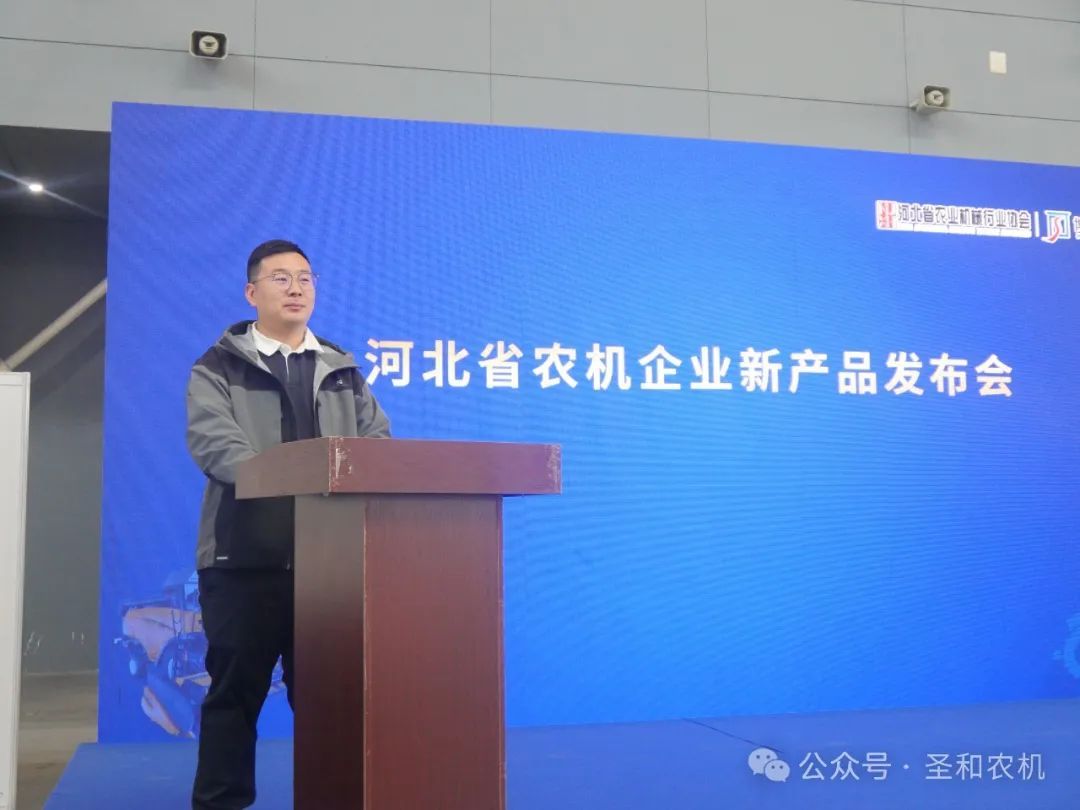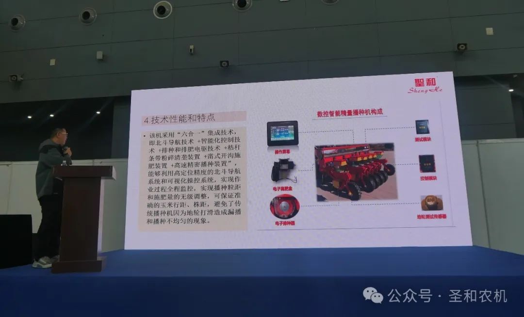 圣和公司副總經理王帥在展會期間由河北農業機械行業協會主辦的“河北省農機企業新產品發布會”中,詳細介紹了圣和公司推出的兩款新品“2BMQ-4/6玉米清壟免耕智能播機”和“1CMJ-200B型殘膜回收與秸稈粉碎還田聯合作業機”。
