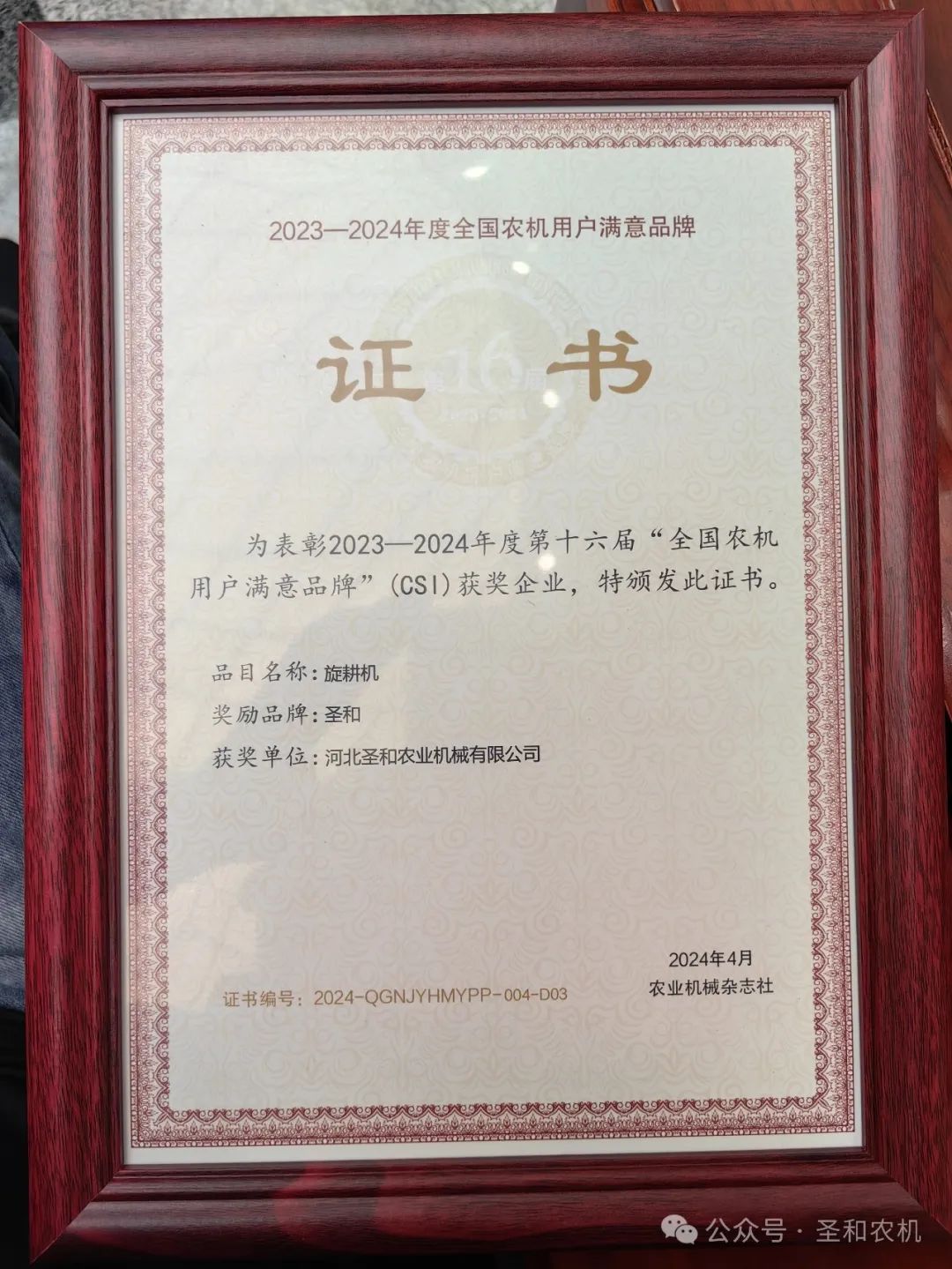 “圣和”品牌從第十屆至十五屆蟬聯(lián)榮獲全國農(nóng)機(jī)用戶滿意品牌大獎。此次“圣和”牌再次蟬聯(lián)第十六屆全國農(nóng)機(jī)用戶滿意品牌大獎,是來自于廣大用戶、行業(yè)專家、領(lǐng)導(dǎo)們對圣和公司產(chǎn)品的肯定和厚愛,更是對“圣和”品牌的高度認(rèn)可。