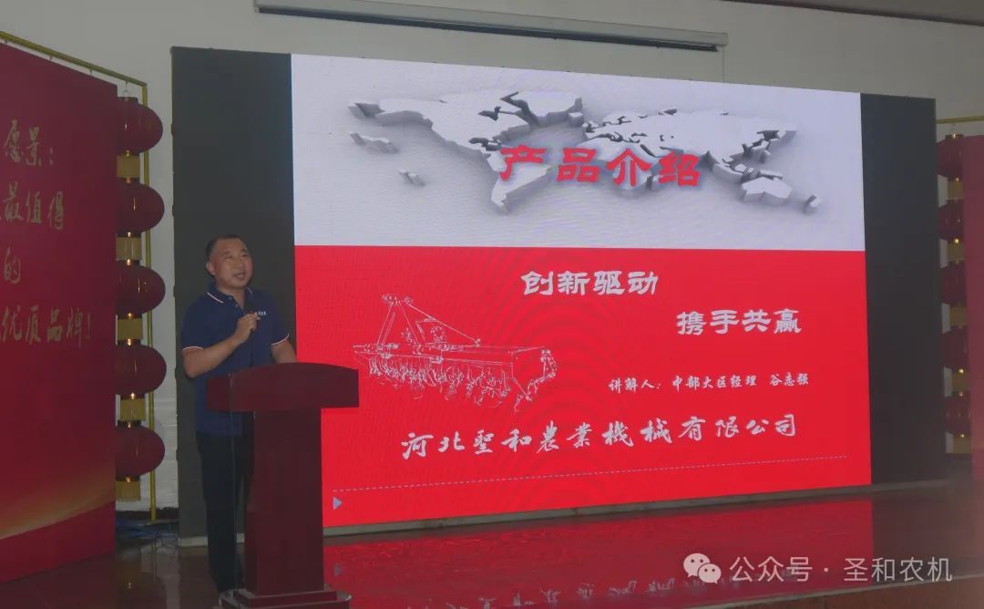 營銷管理中心中部大區總經理谷志強,東部大區總經理劉欣對公司針對本部區域的產品做了介紹。聽完產品介紹,廣大經銷商進一步加深了對圣和產品的了解。同時,也給了大家十足的市場信心。