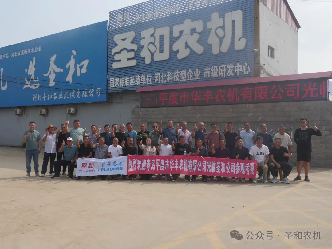 2024年8月14日,平度市農機手、合作社代表40余人,在青島平度市華豐農機有限公司陳秋里總經理的帶領下,到河北圣和農業機械有限公司進行實地參觀考察。圣和公司營銷管理中心總經理郭廣彥對參觀團的來訪表示熱烈的歡迎,并熱情接待。