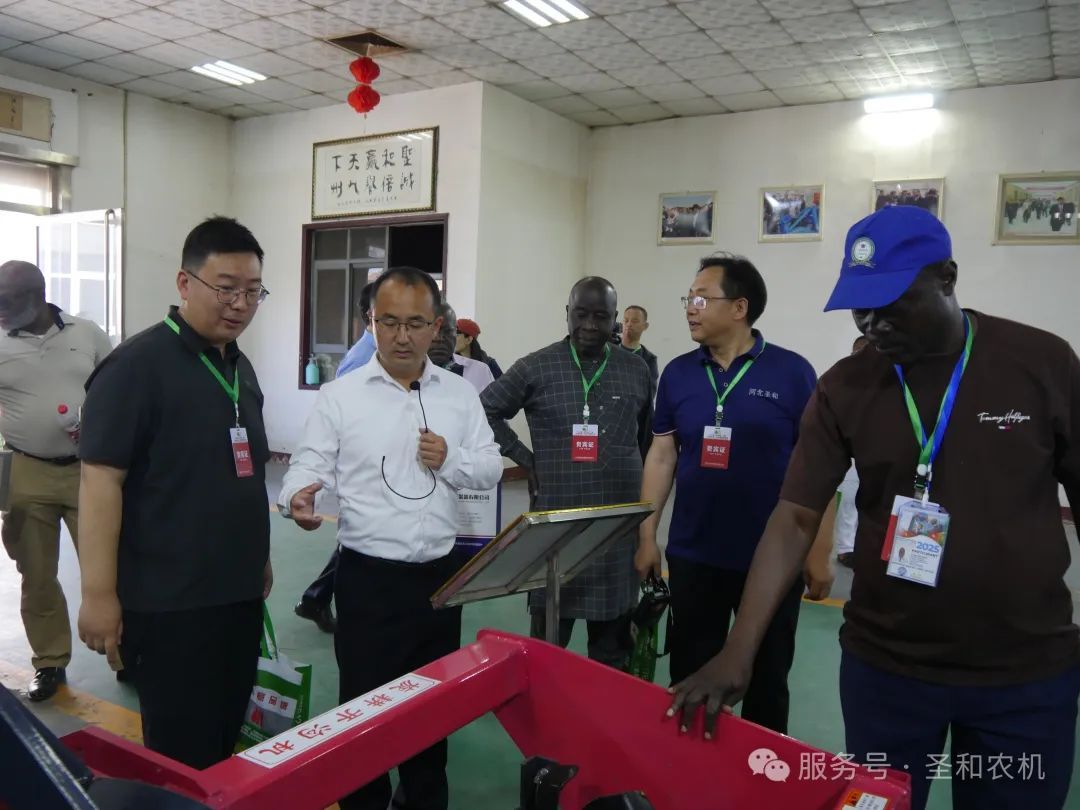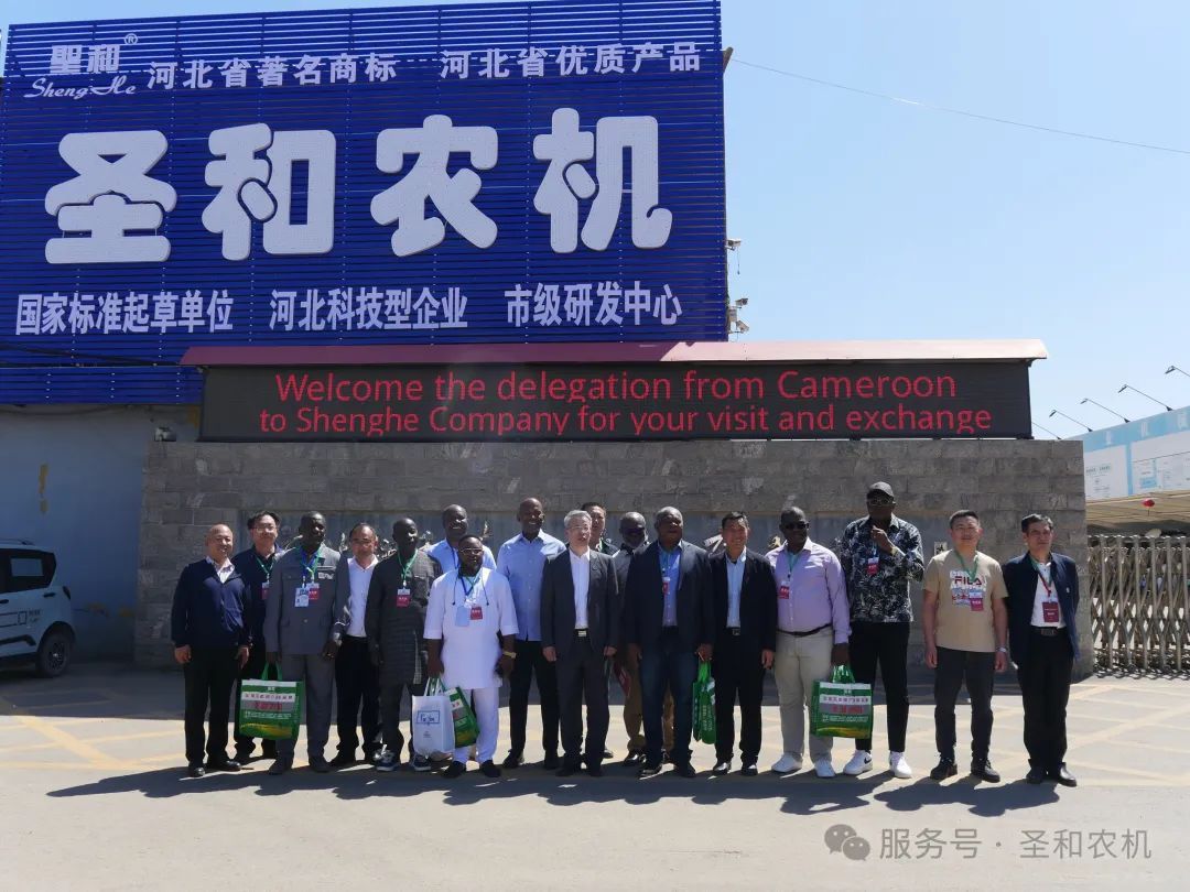 2025年4月28日,由喀麥隆權力下放和地方發展部合作主任翁杜瓦·塞爾日·埃爾韋率領的喀麥隆代表團一行30位嘉賓,來到河北圣和農業機械有限公司考察交流。此次考察不僅是中喀雙方在經濟領域交流的重要活動,也為未來雙方在農業機械領域的合作奠定了基礎。