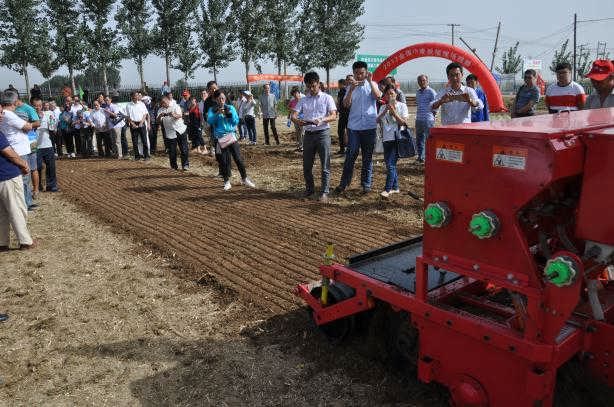 2017年9月22日,全國小麥秋播現場觀摩暨技術培訓班在石家莊市辛集市隆重舉行。此次觀摩會由農業部全國農技中心主辦,河北省農業技術推廣總站牽頭,河北省農機修造站承辦。來自天津、河北、山西、上海、江蘇、安徽、山東、河南、陜西、湖北、重慶、四川、甘肅、貴州等省(自治區、直轄市)農業技術推廣站(總站)代表、有關專家等200余人參加了此次觀摩會。圣和農機攜旗下播種神器---2BFSG-12(12)(200)深松旋耕施肥撒播機亮相并且現場作業演示。
