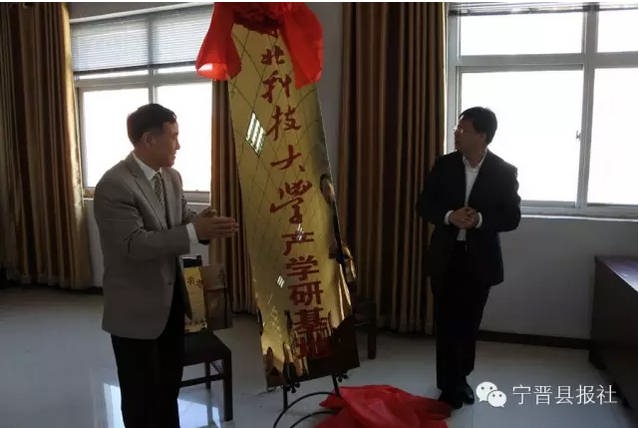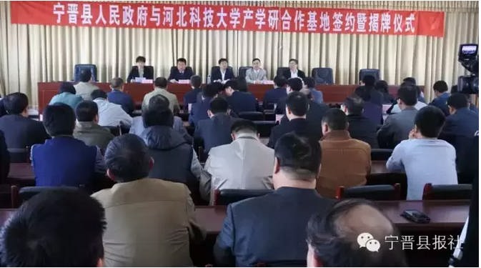 在熱烈的掌聲中,李小平、靳占忠分別代表寧晉縣政府與河北科技大學簽署產學研合作協議,并為河北科技大學產學研基地、河北科技大學技術轉移中心寧晉分中心揭牌。